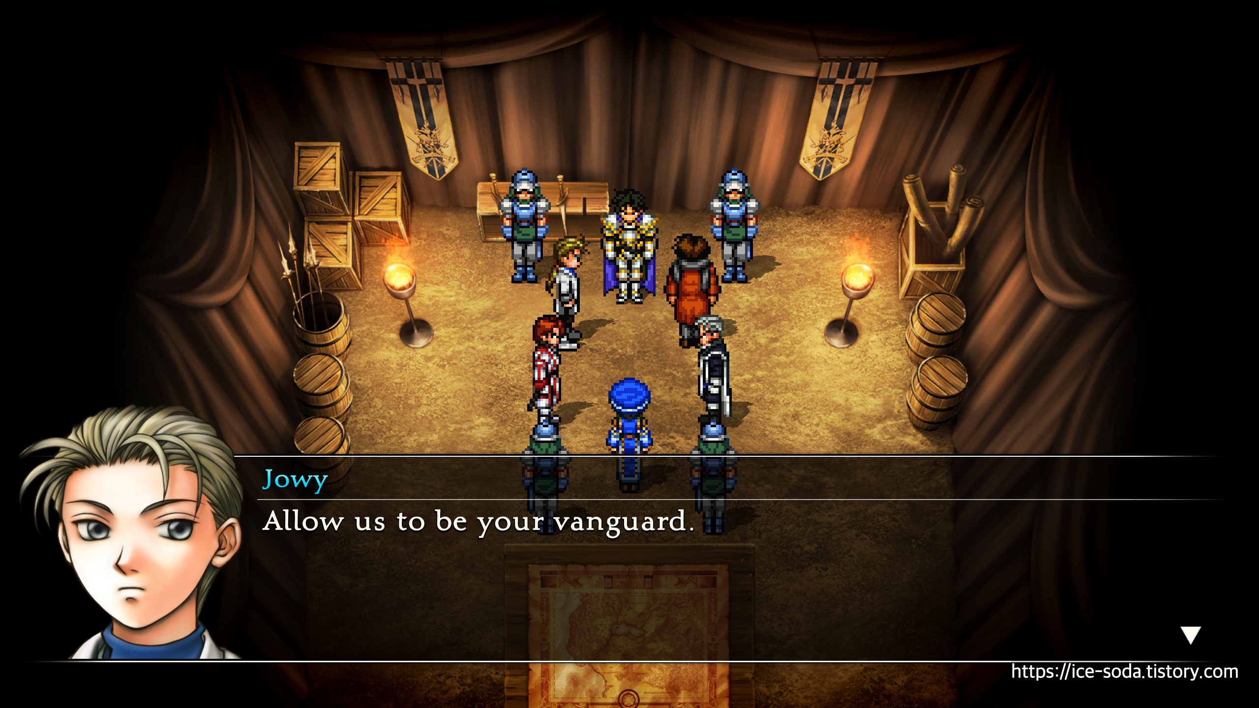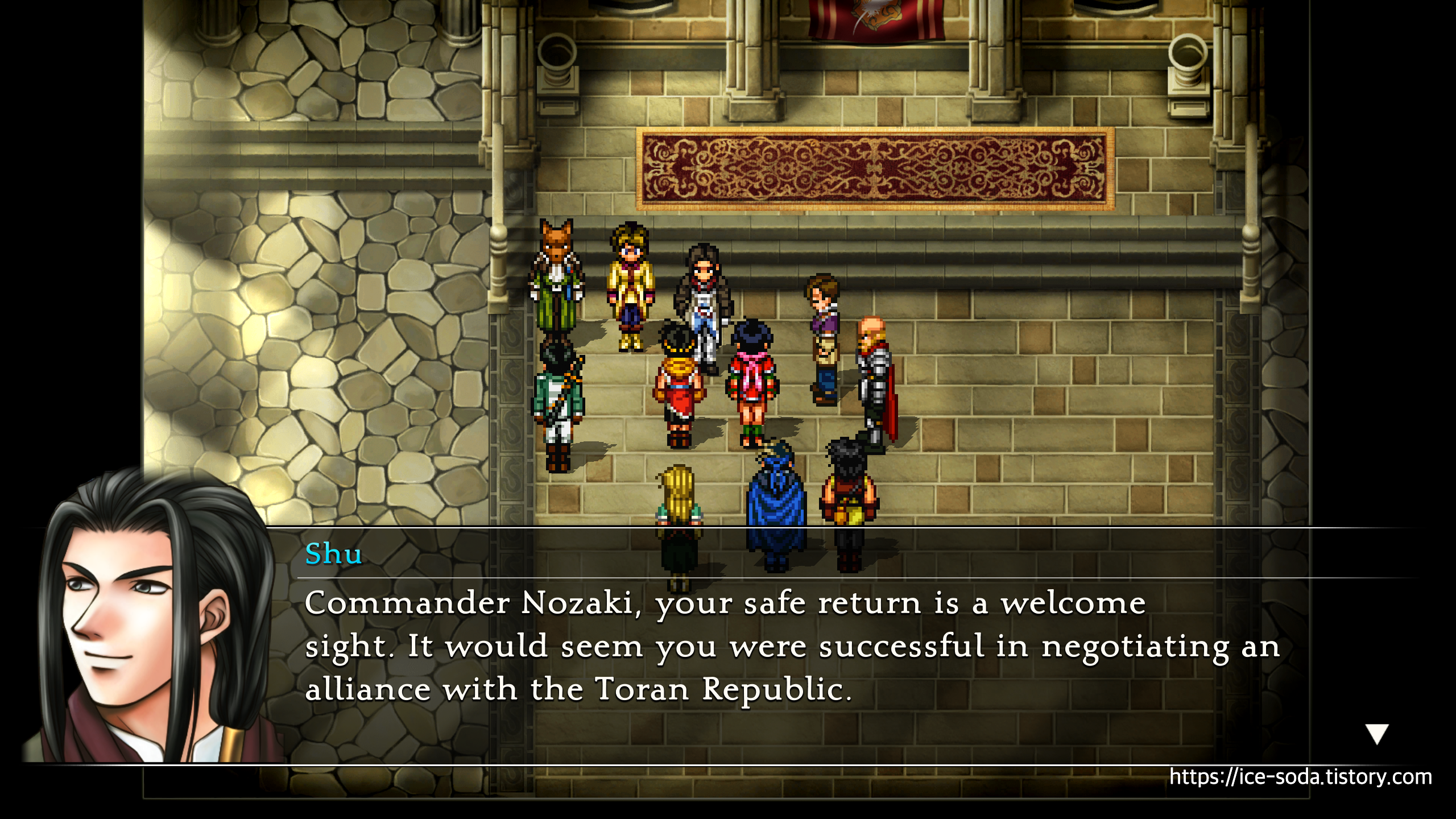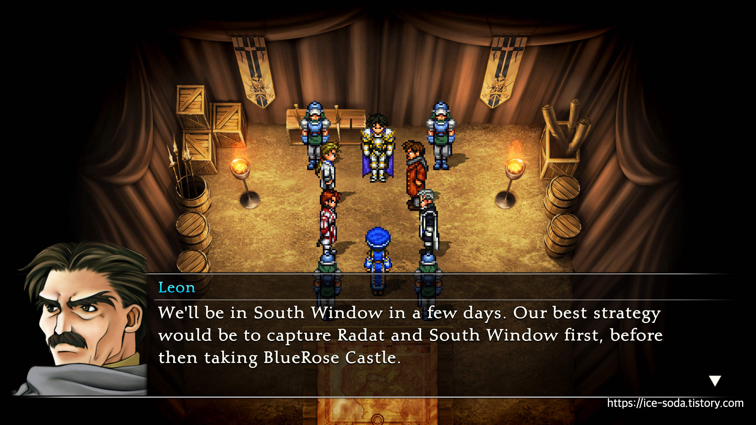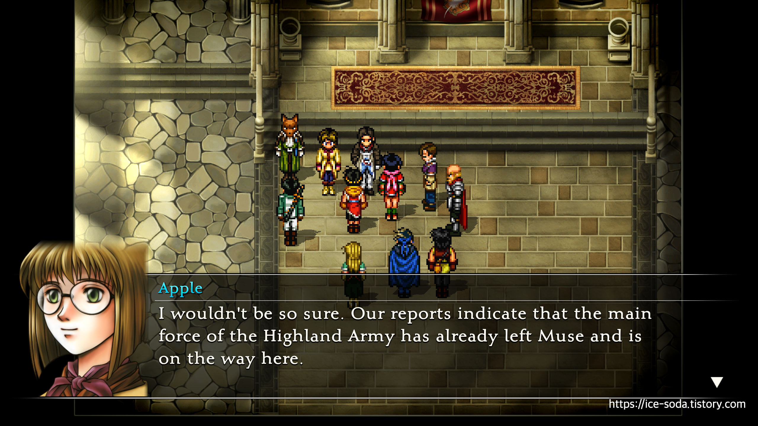 회의장으로 들어가면 슈우가 예상대로 하이랜드 군이 라다트에 나타났다는 소식을 전한다.