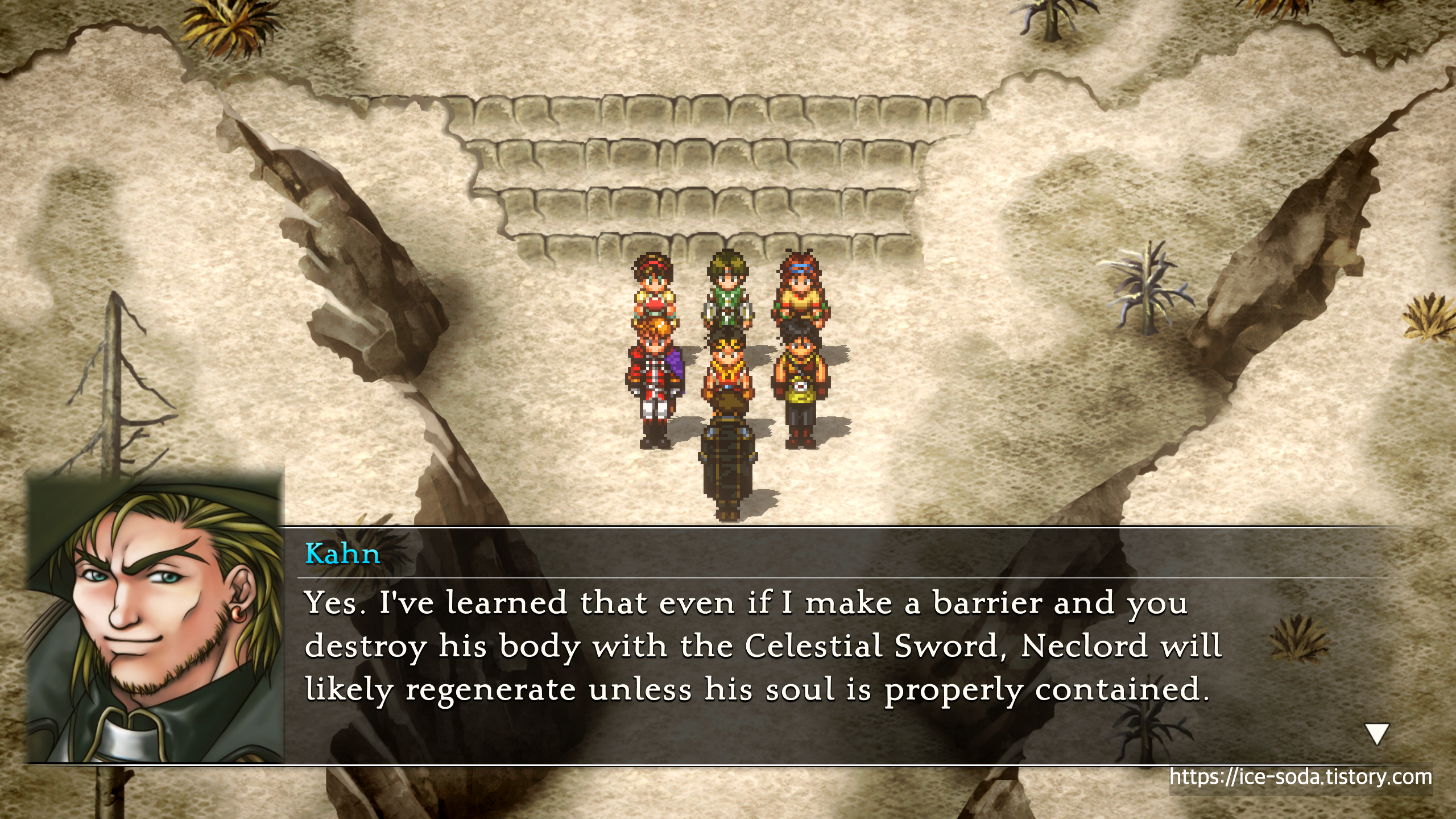 "그것은... "방법"이라기보다는 사람이라고 해야겠군요. 그것을 할 수 있는 힘을 가진 사람 말입니다. 이분도 네크로드를 쫓고 있고, 지금은 코코 마을에 있다고 하더군요."