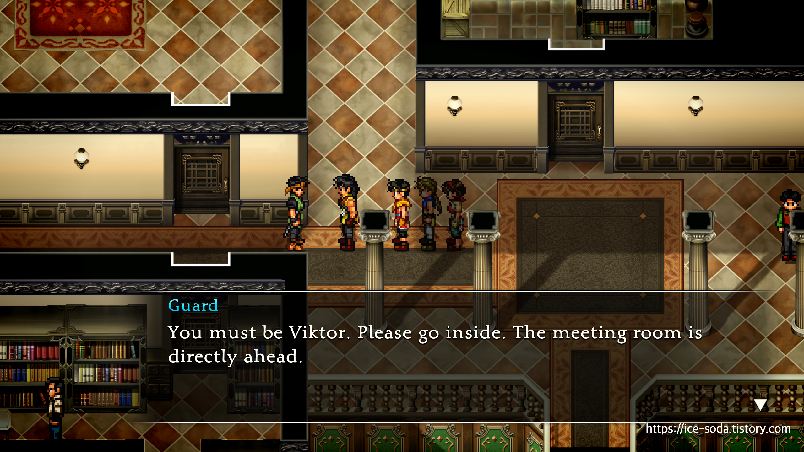 매우 높으신 분이신지, 가드가 문 앞을 지키고 있다.