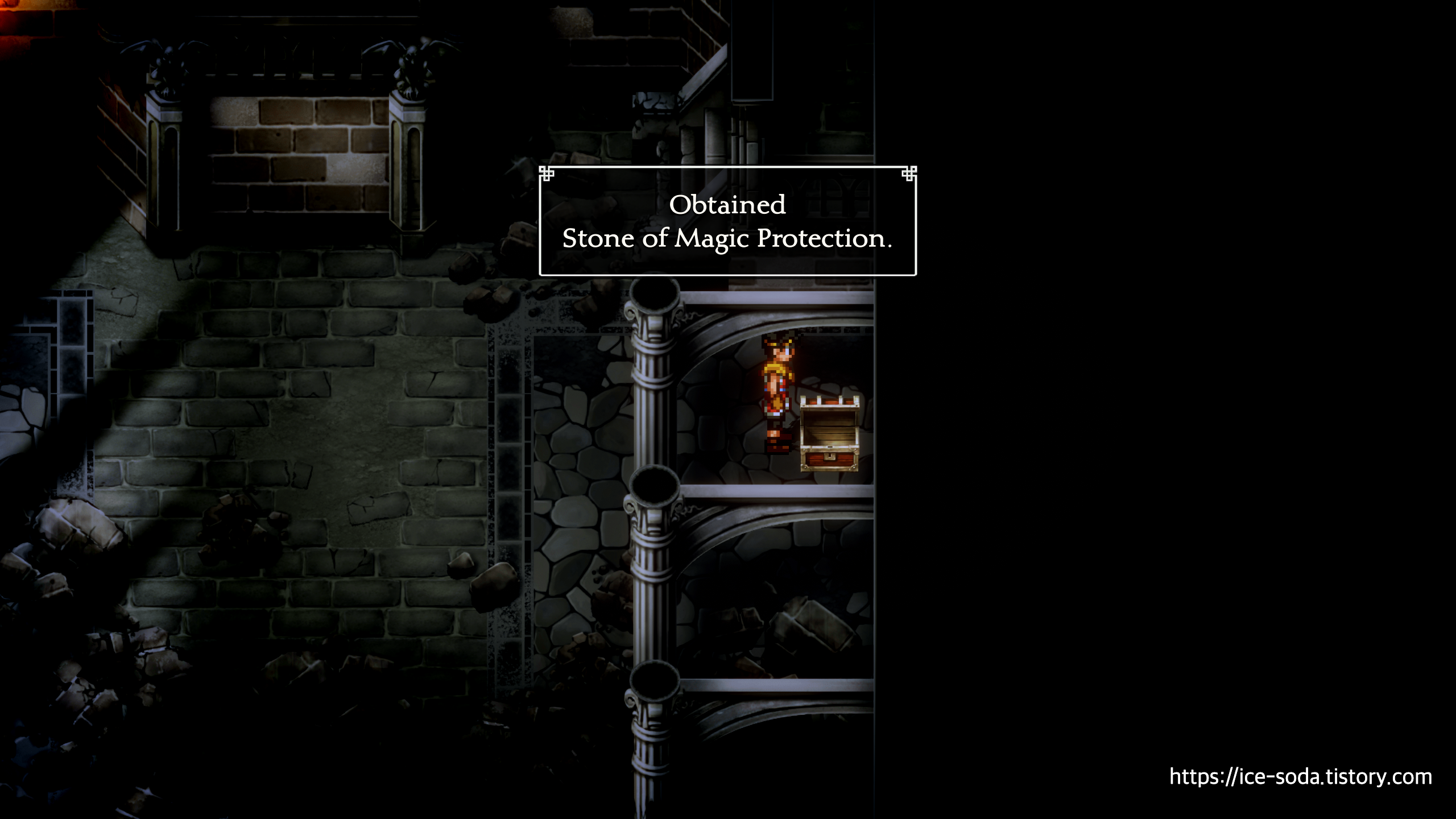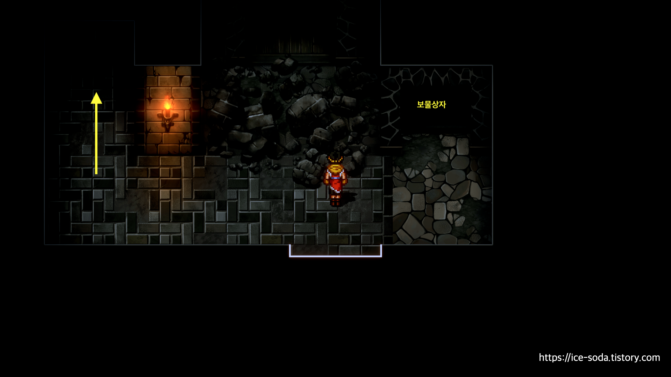 앞으로 쭉 와서 보물상자를 연 뒤