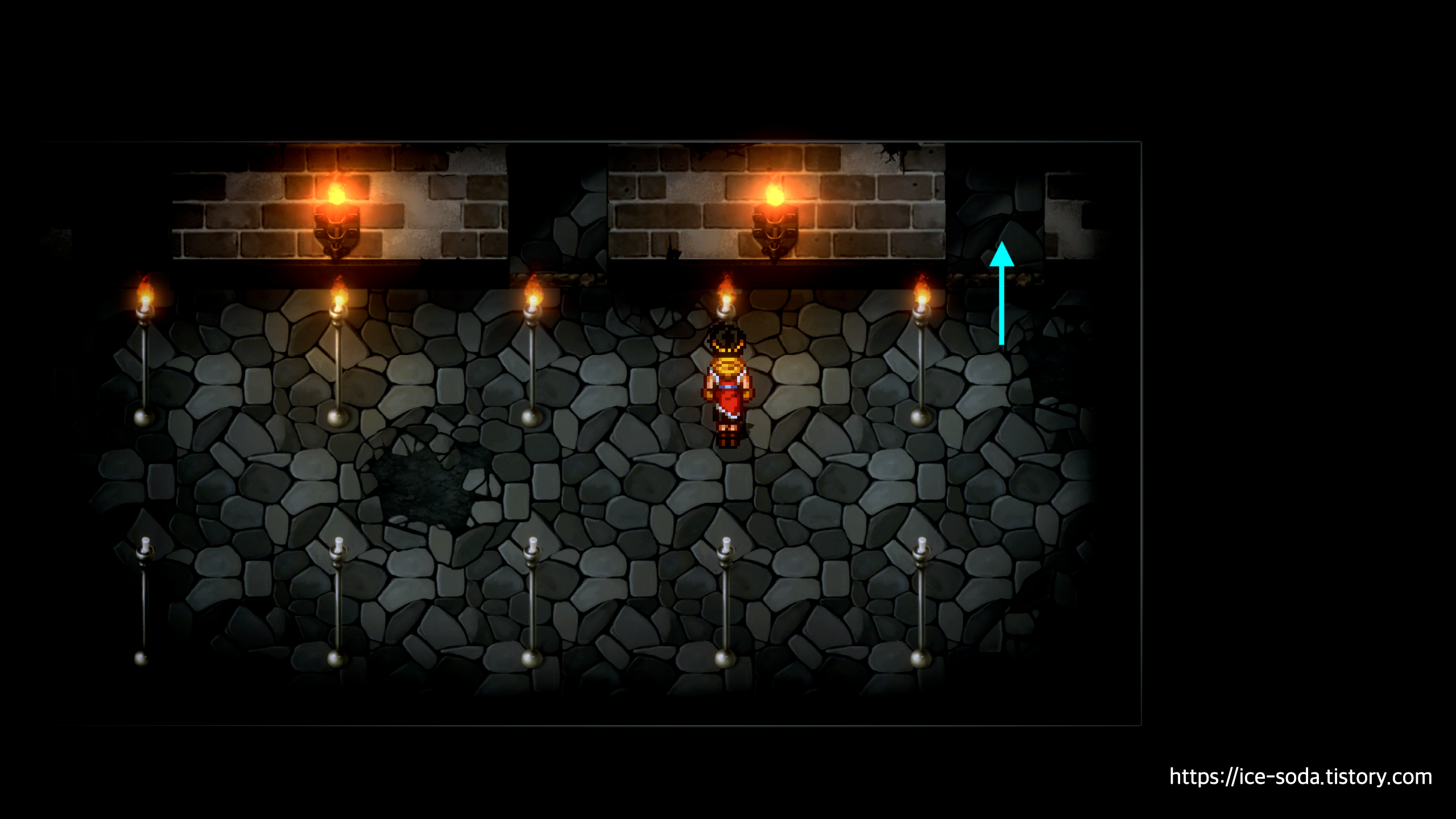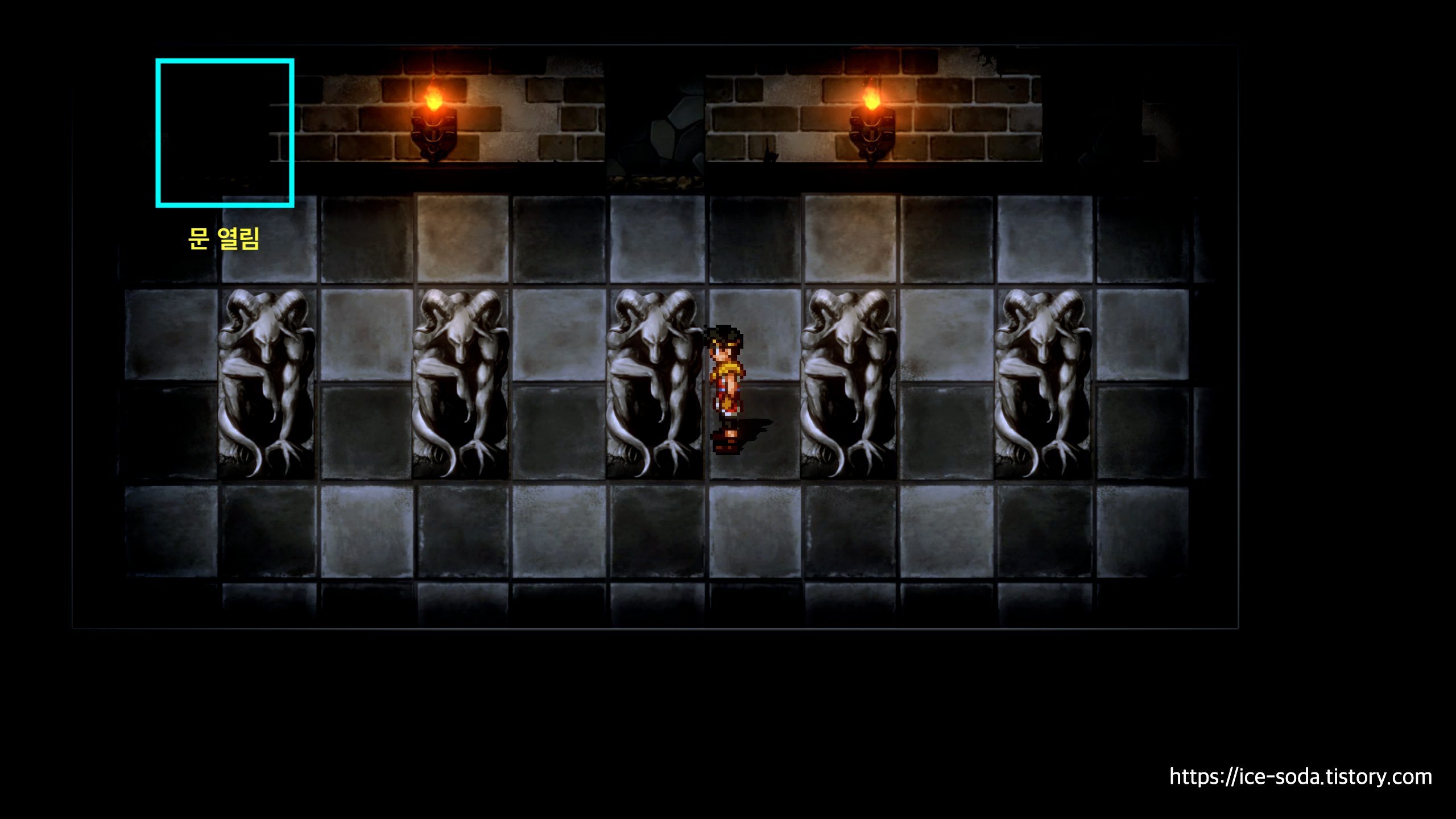 이번에는 1행에서 유일하게 불이 켜지지 않은 횃불만 켜주면