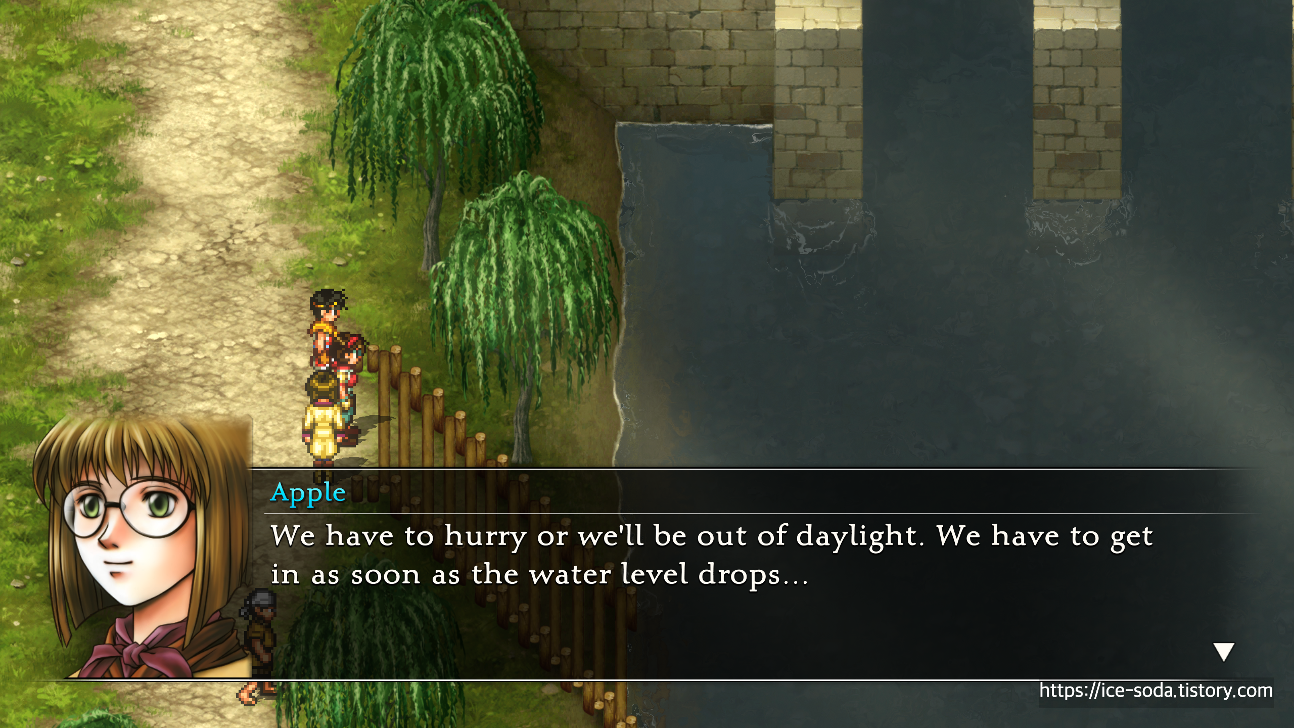 강가에서 이러고 있는 일행을 보며