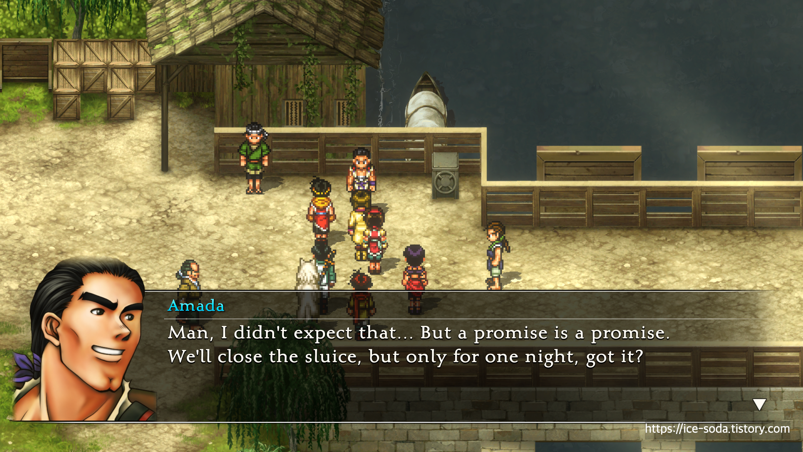 수문을 하룻밤 닫아주겠다고 하는 아마다.