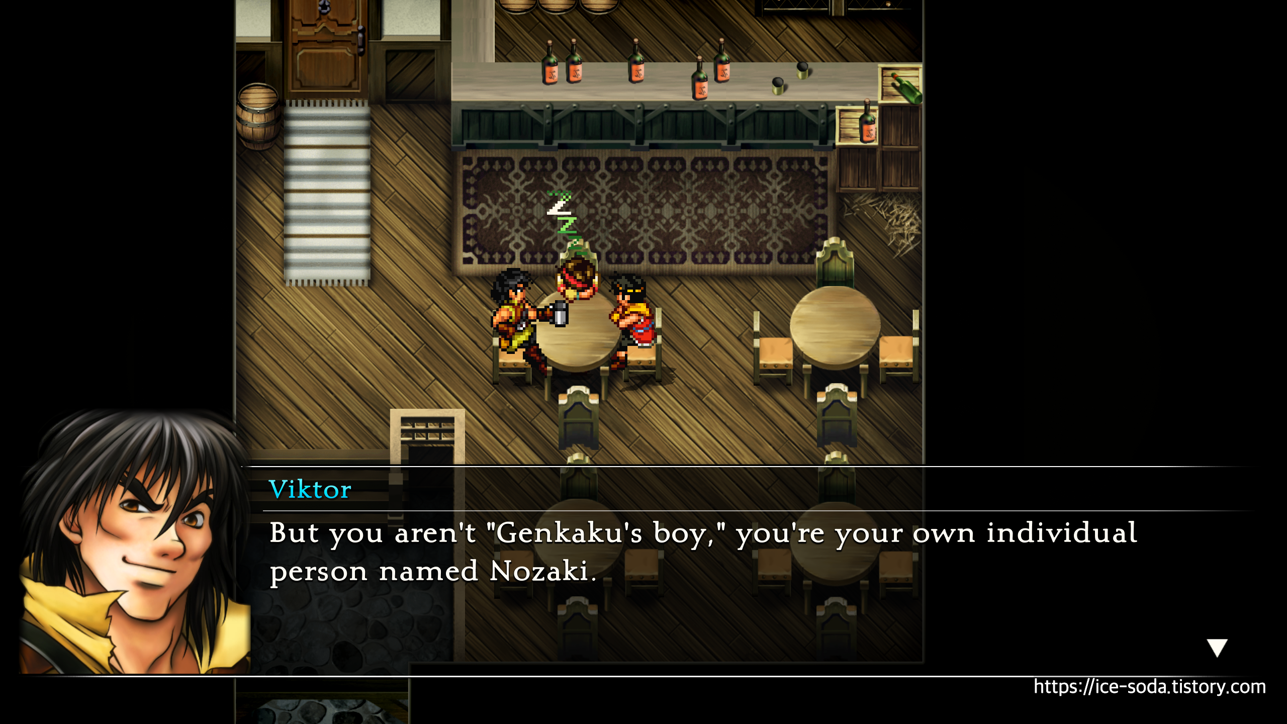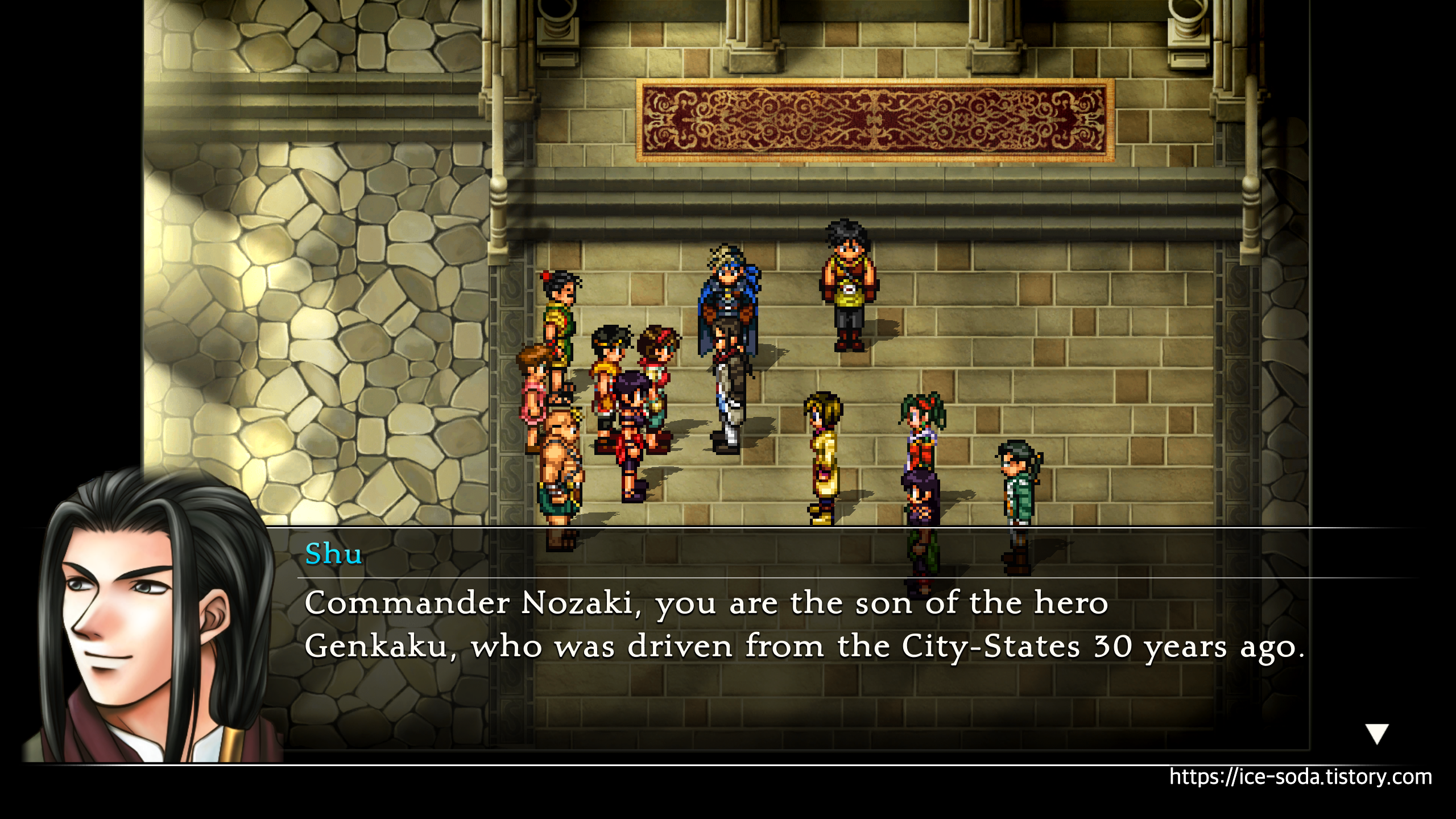 "노자키님, 당신은 30년 전, 죠스턴-도시 동맹에서 추방당한 겐카쿠 사부의 아들이십니다."