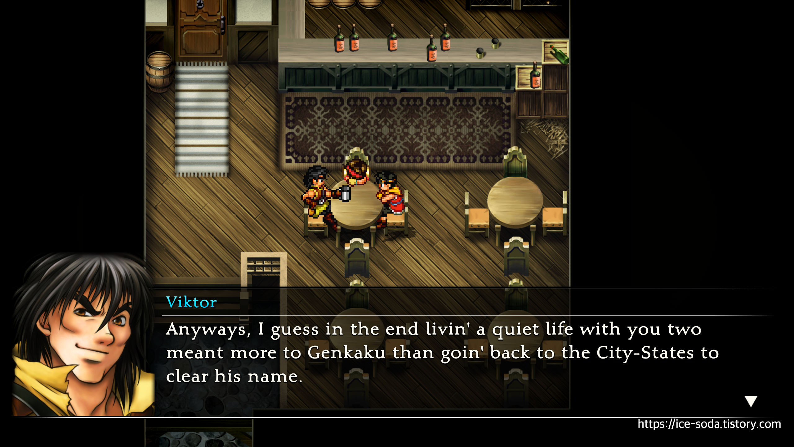 영업 끝난 주점에 홀로 앉아 둘을 기다리고 있던 빅토르.