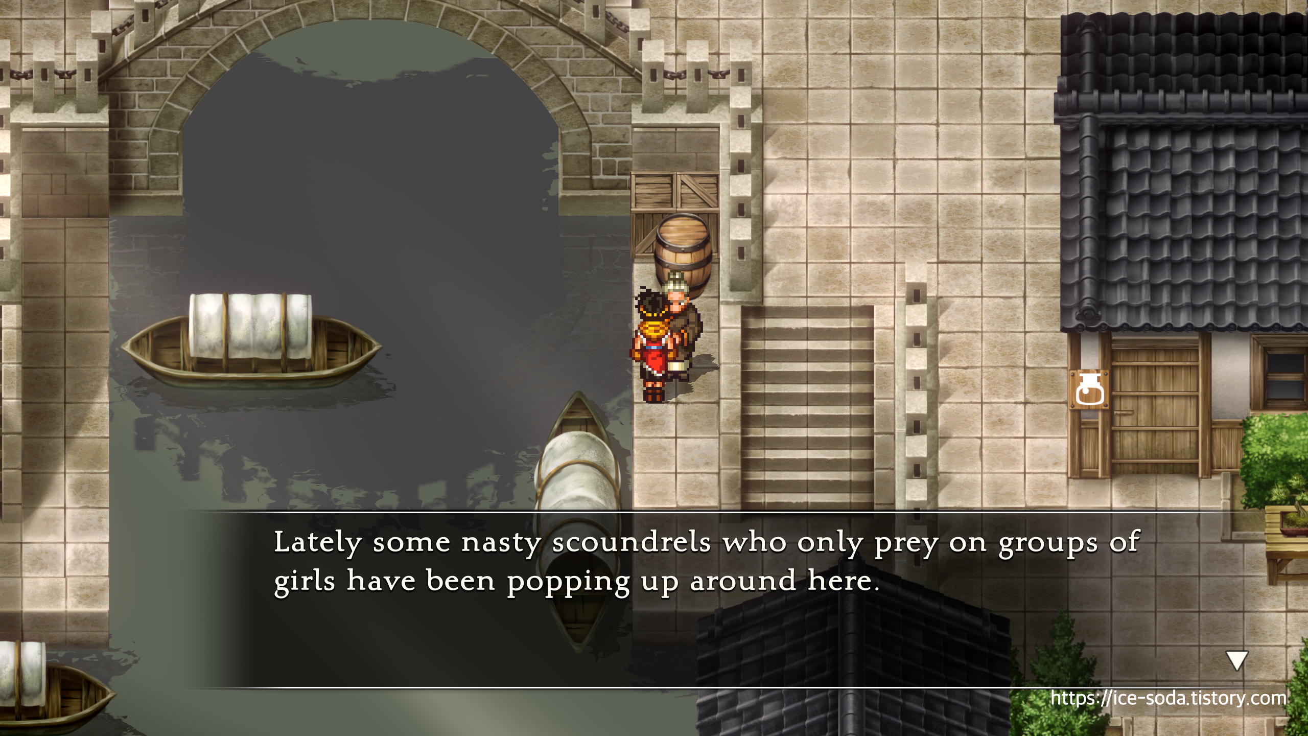 노파가 요즘 마을에 소녀들을 노리는 불량배들이 있다는 말을 해준다.