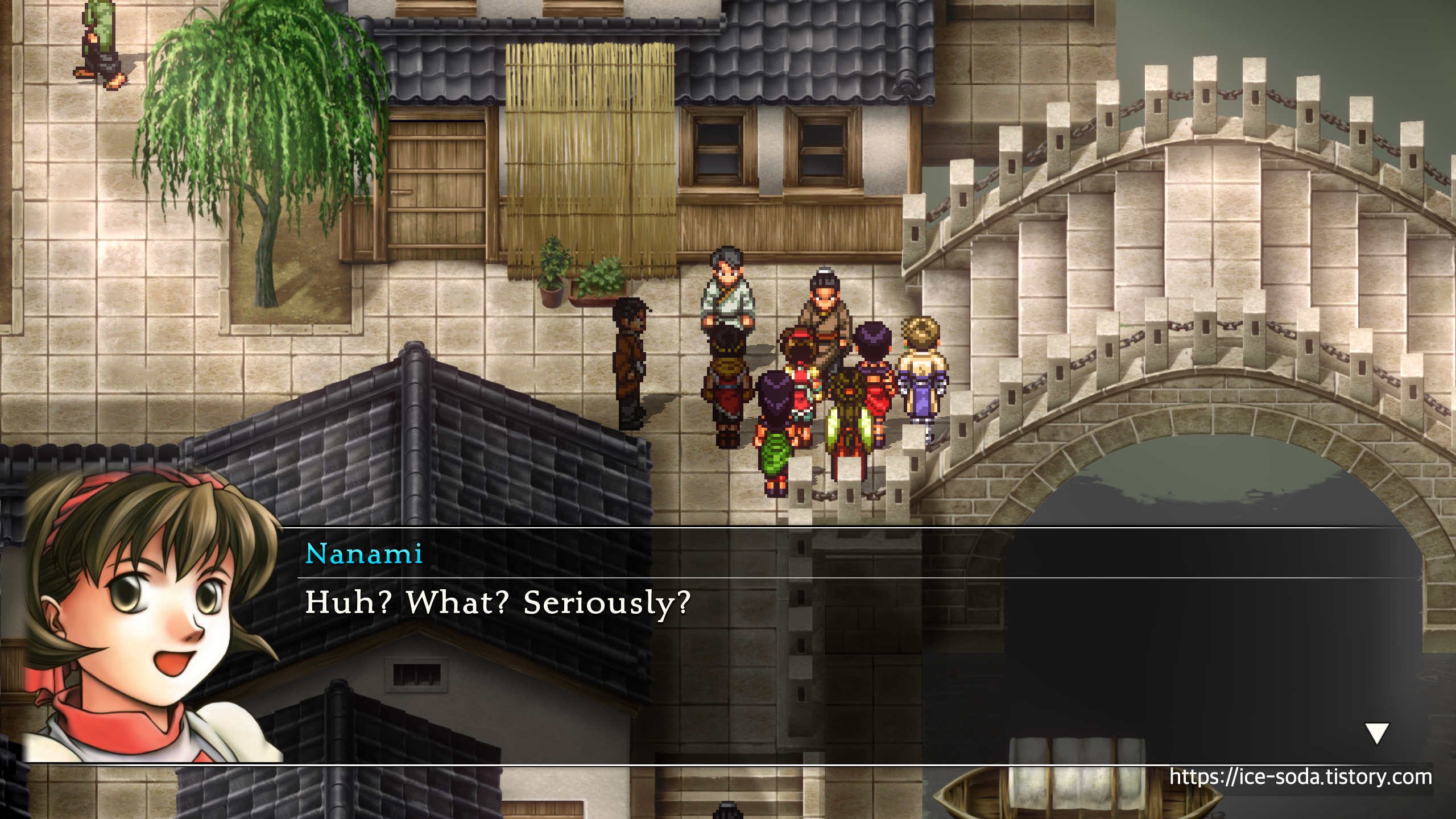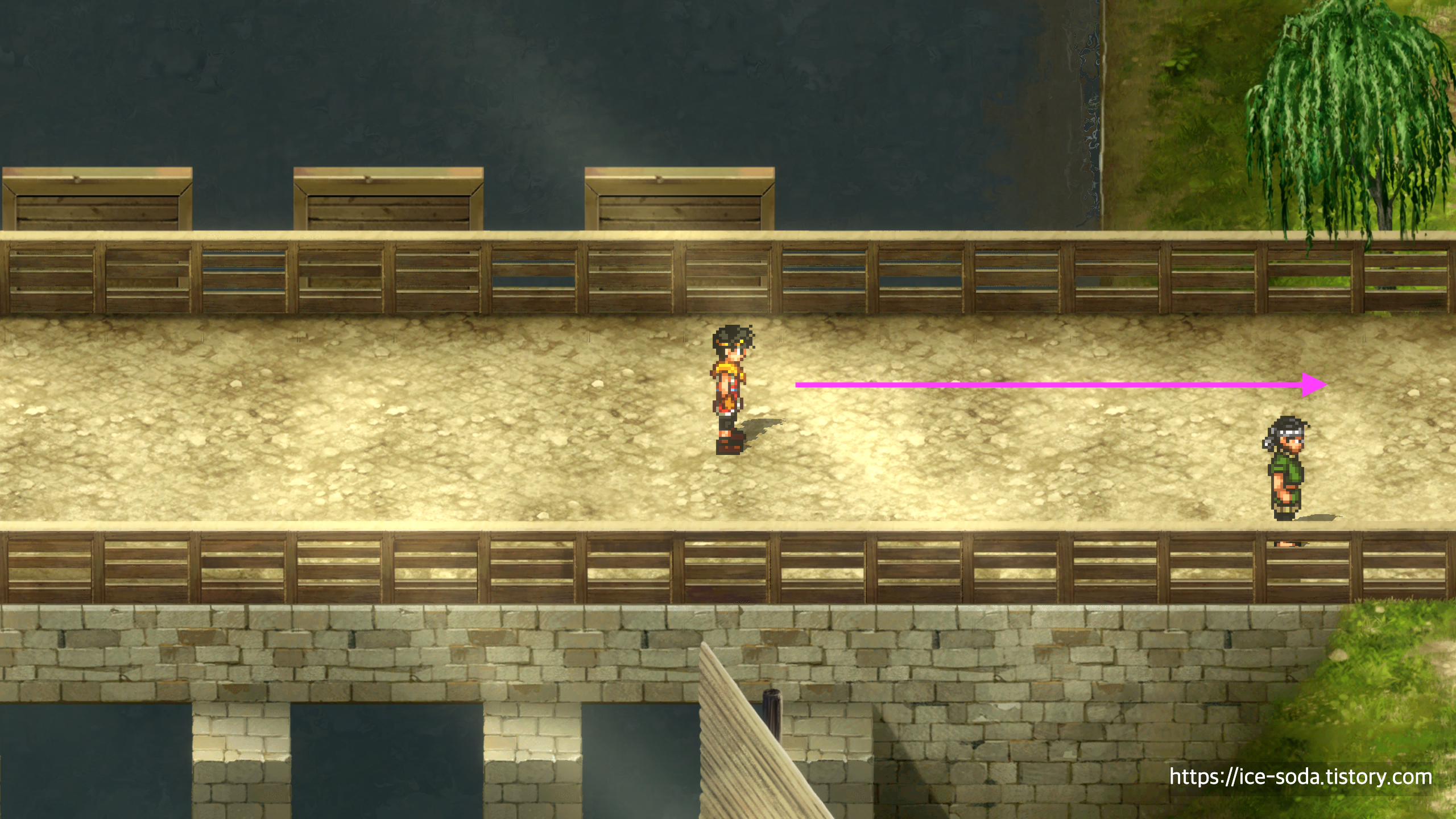 노파가 있는 지점 바로 위에 있는 다리를 건너도록 하자.
