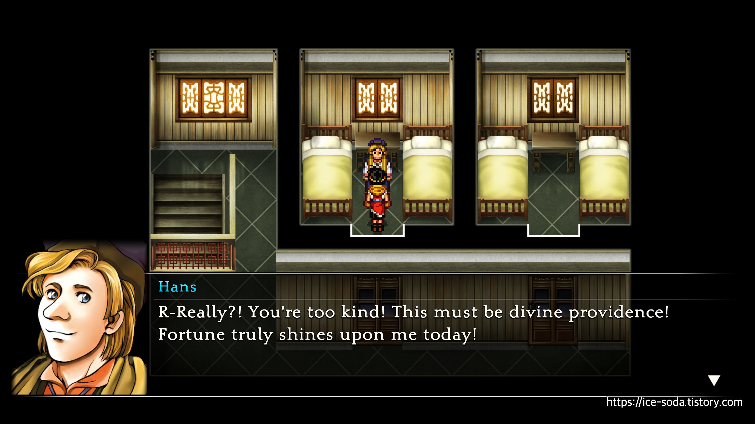 1층으로 내려가기 전, 옆방에 있는 한스에게 말을 걸자.