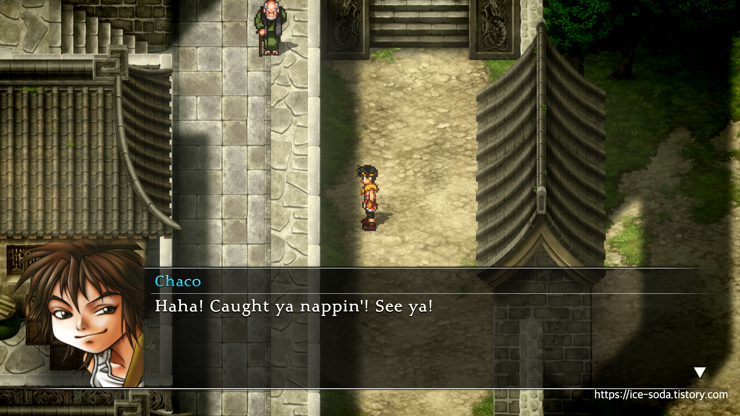 그런데... 마을에 들어오자마자 차코라는 놈이 노자키를 치고 도망갔다.