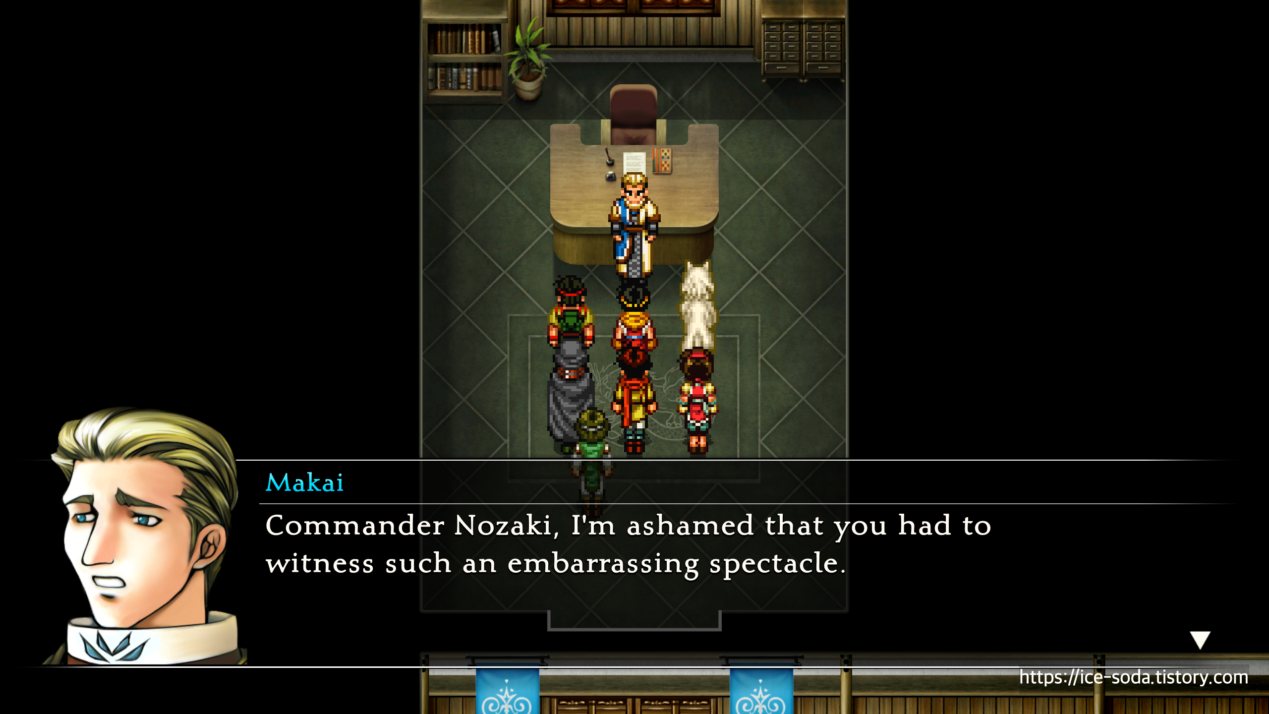 "노자키님, 이런 꼴사나운 장면을 보여드려 매우 송구스럽습니다."