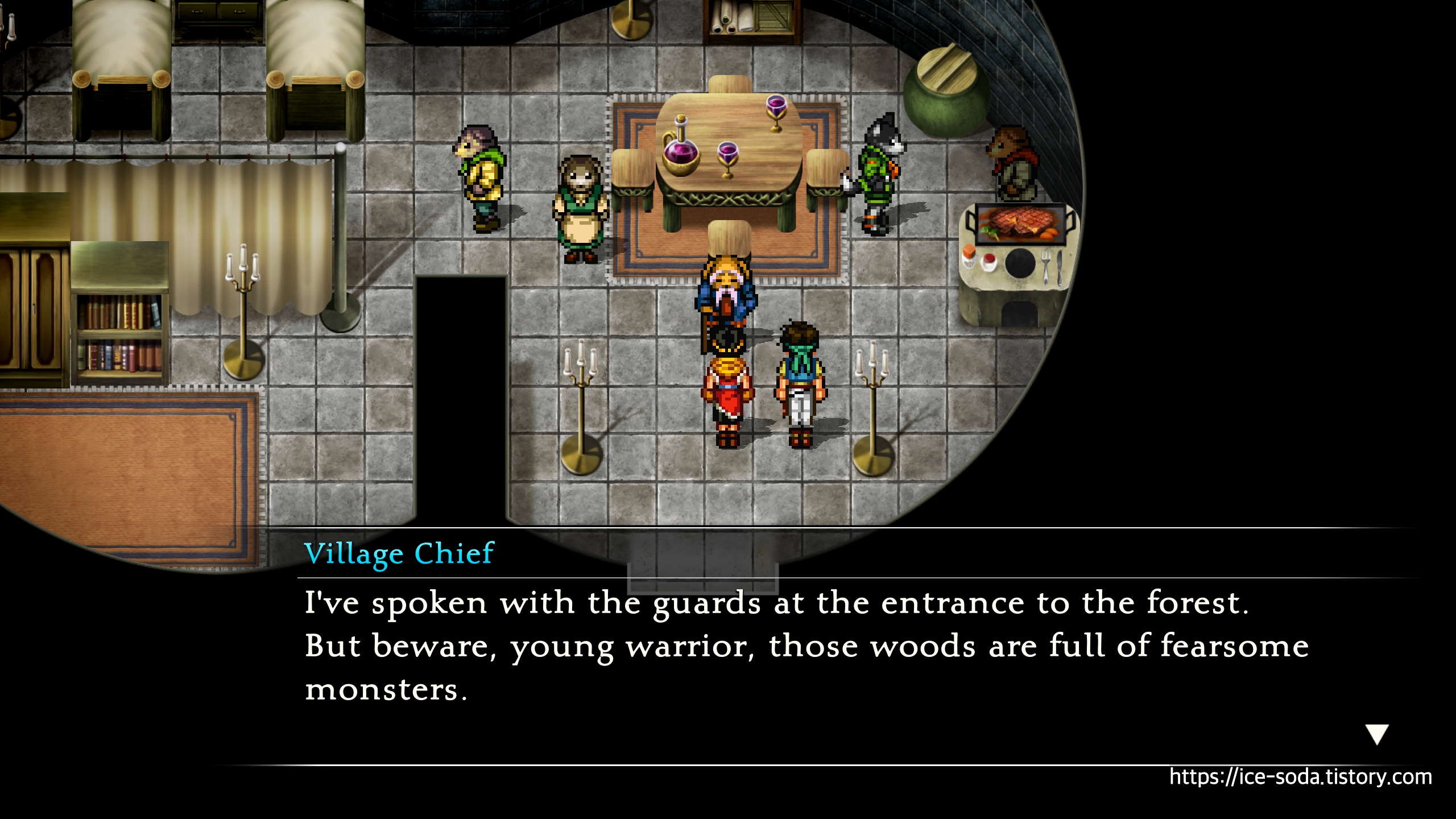 하지만 명심하세요, 젊은 전사님. 이 숲은 무시무시한 몬스터들로 우글거립니다."