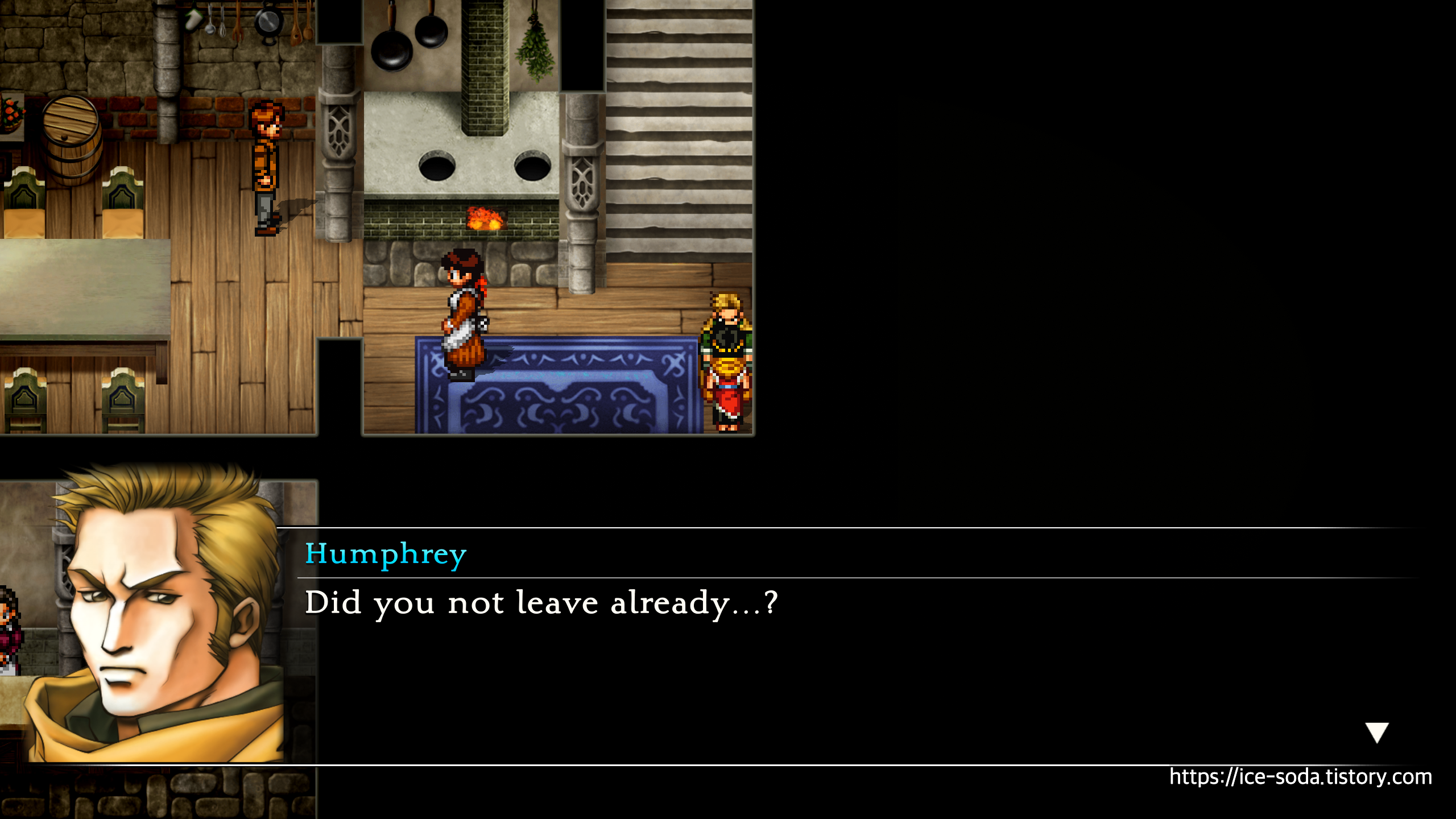 여관 안으로 들어와 험프리에게 말을 걸면, 아직 안 갔냐고 물어본다.