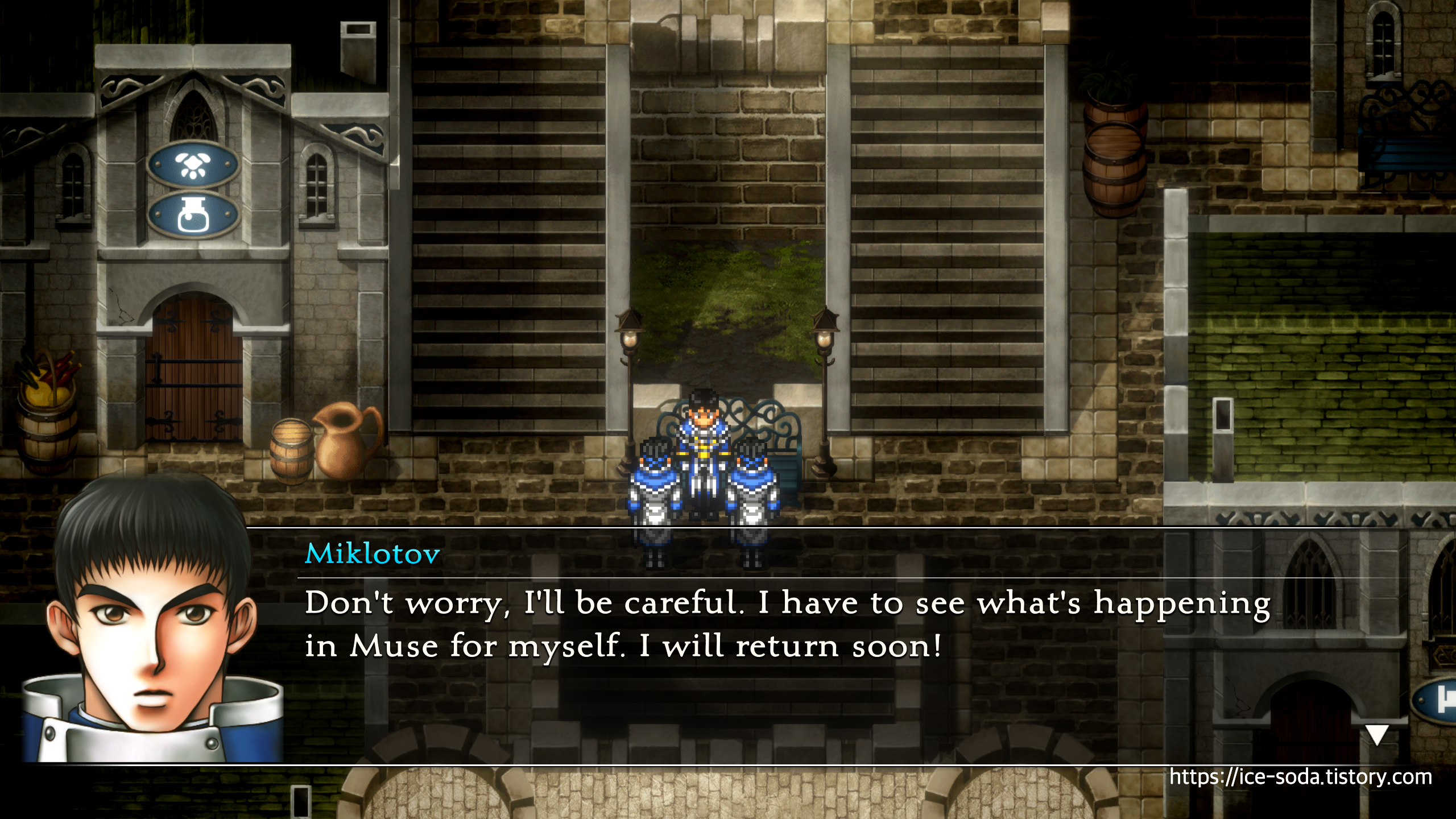 "뮤즈는 남동쪽에 있는 관문을 통과하면 갈 수 있습니다. 부탁드립니다... 마이크로토프를 지켜주십시오."